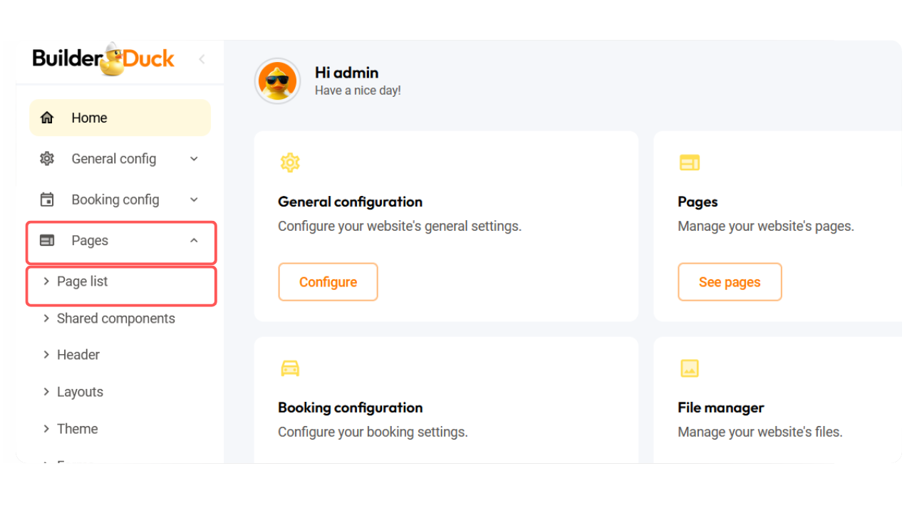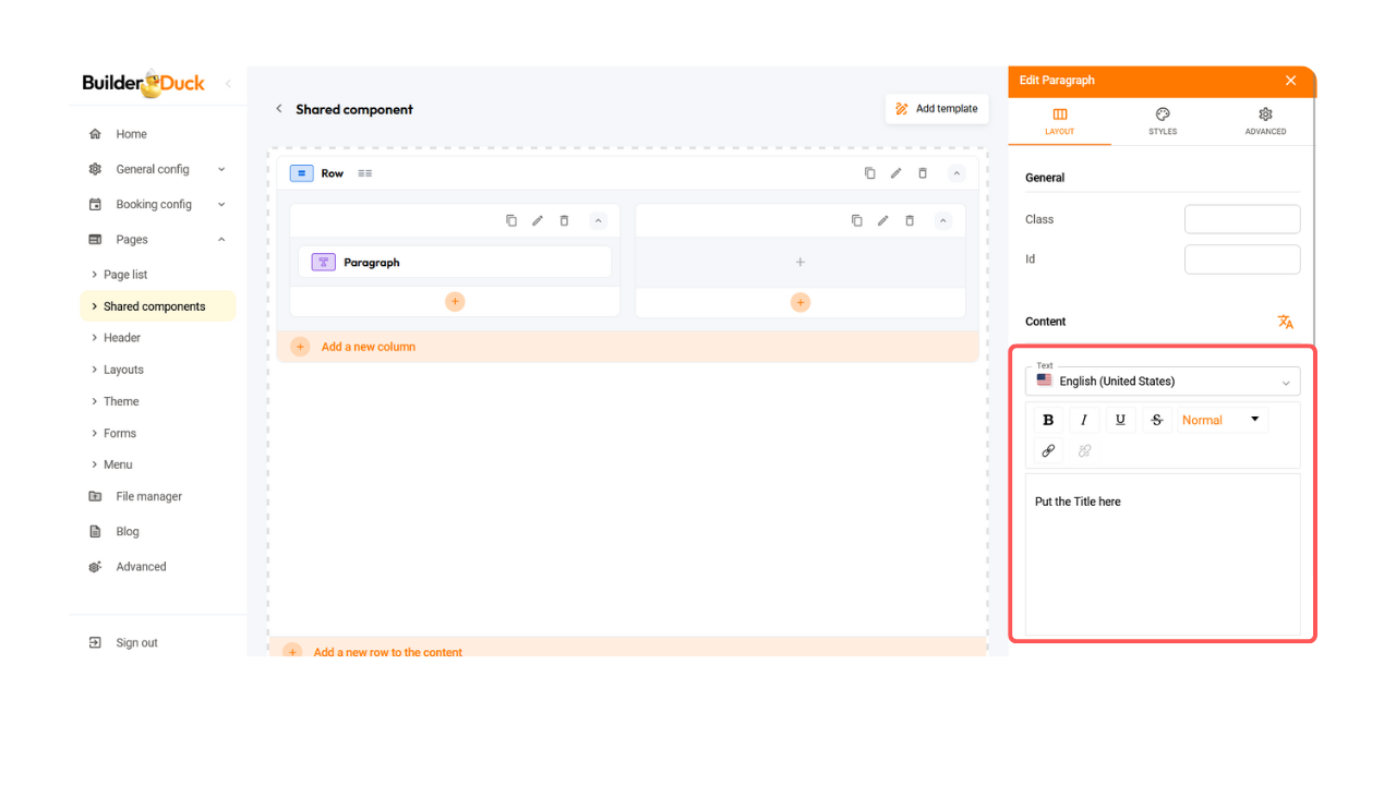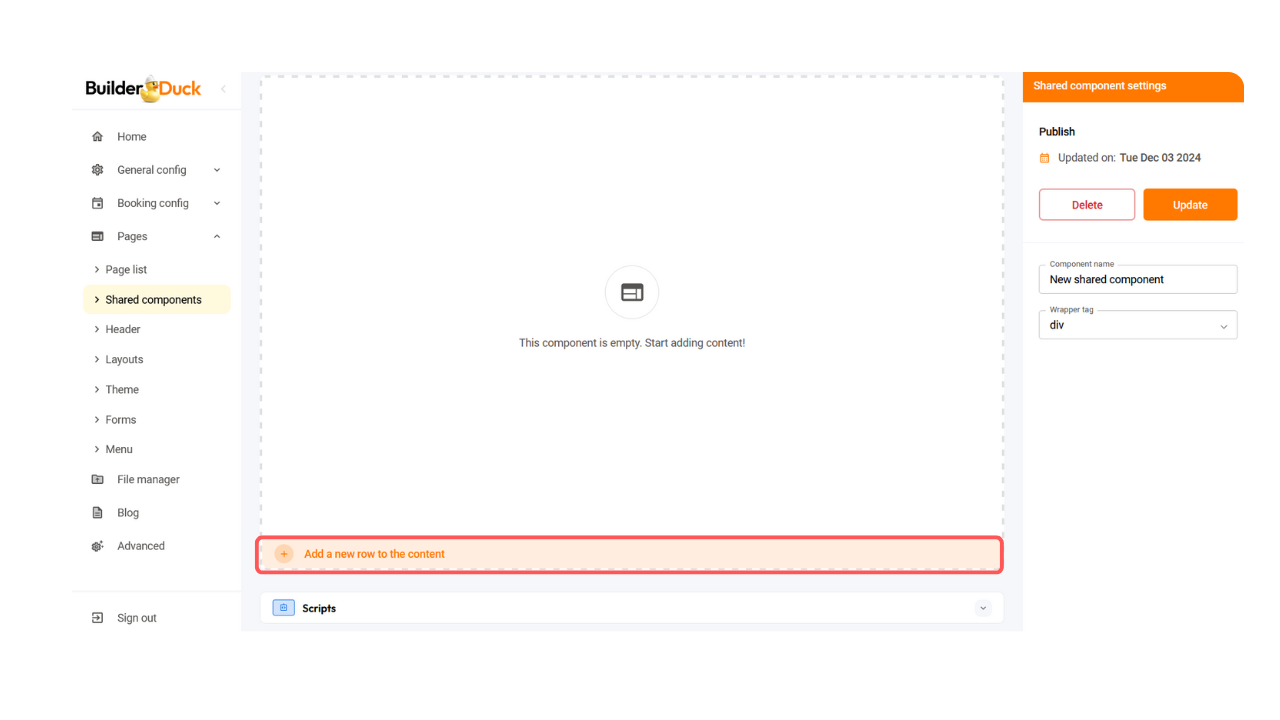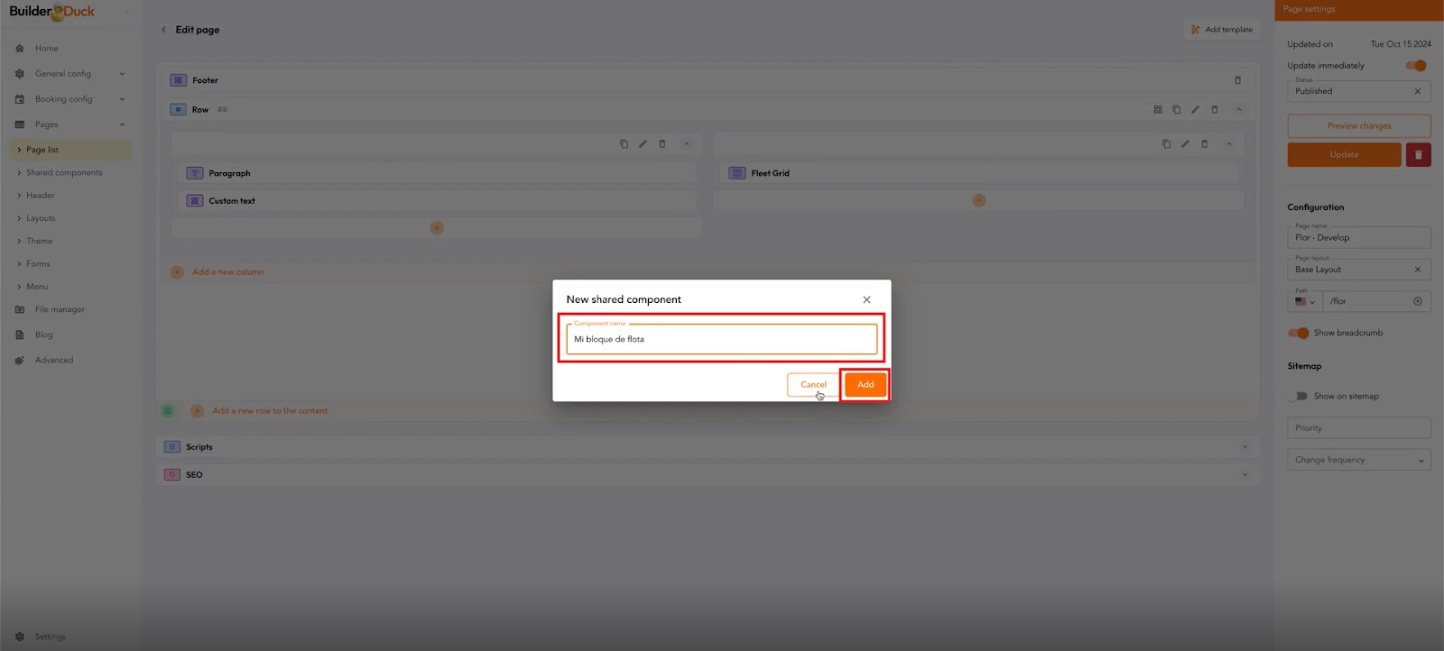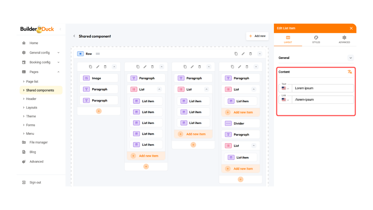 Com o BuilderDuck, você pode adicionar componentes compartilhados, como diferentes rodapés ou cabeçalhos.