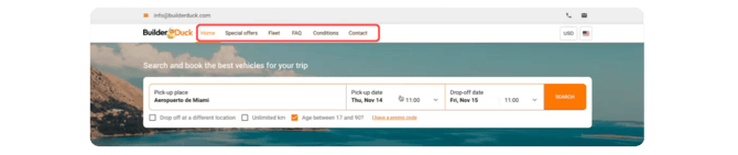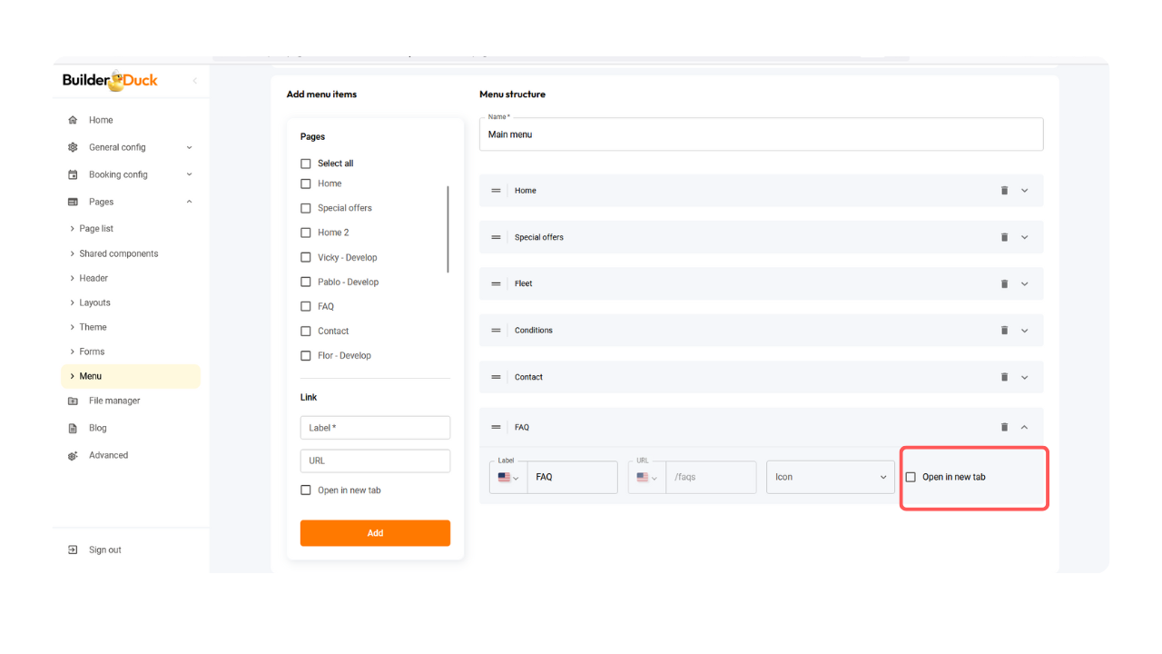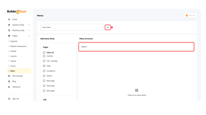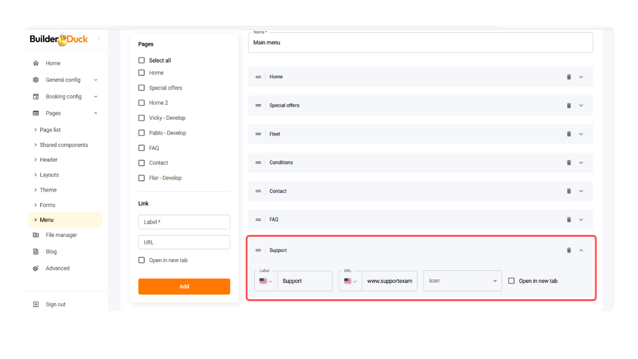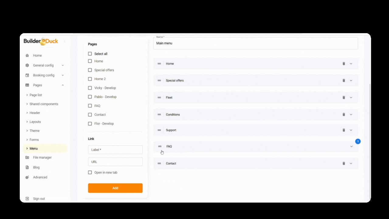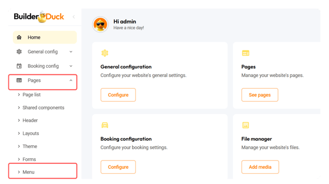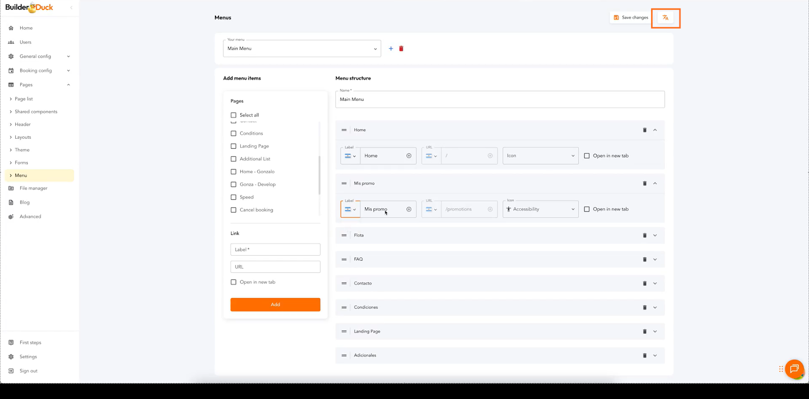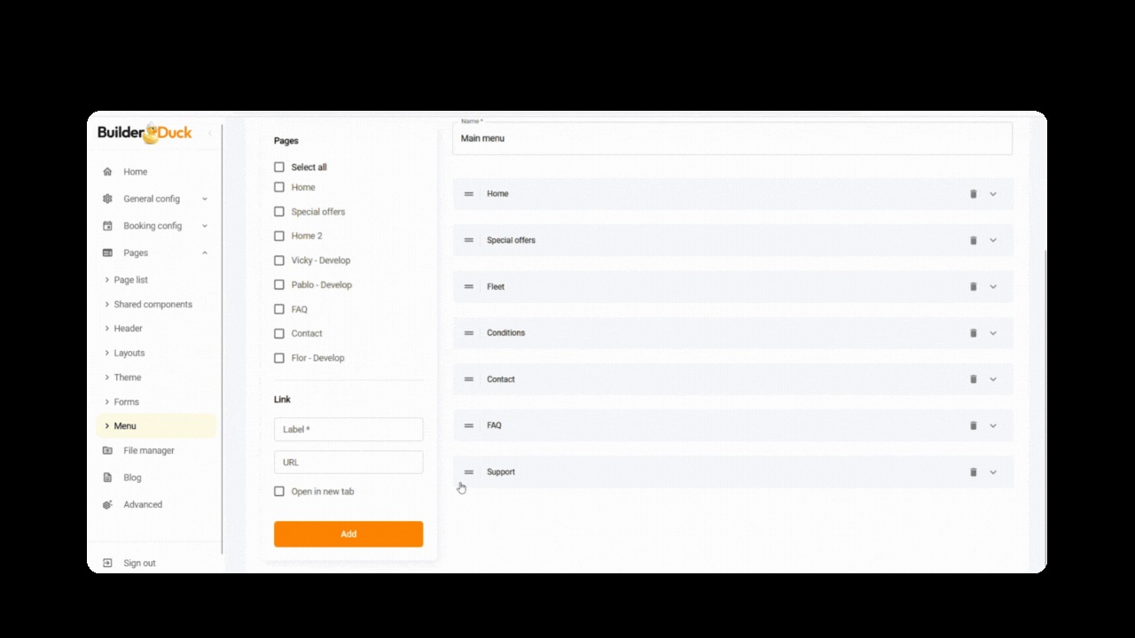 Com o BuilderDuck, você pode personalizar as páginas que podem ser acessadas a partir do menu de navegação.