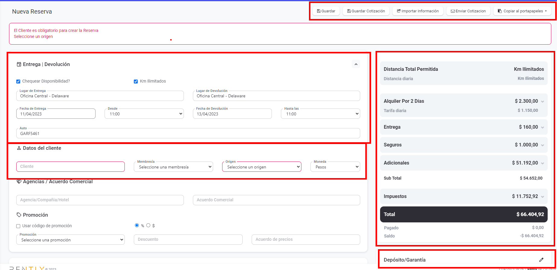 3. Insira o nome do cliente criado anteriormente. Se precisar de informações sobre como criar um cliente:  http://help.rentlysoft.com/es/articles/5313631-como-crear-nuevos-clientes