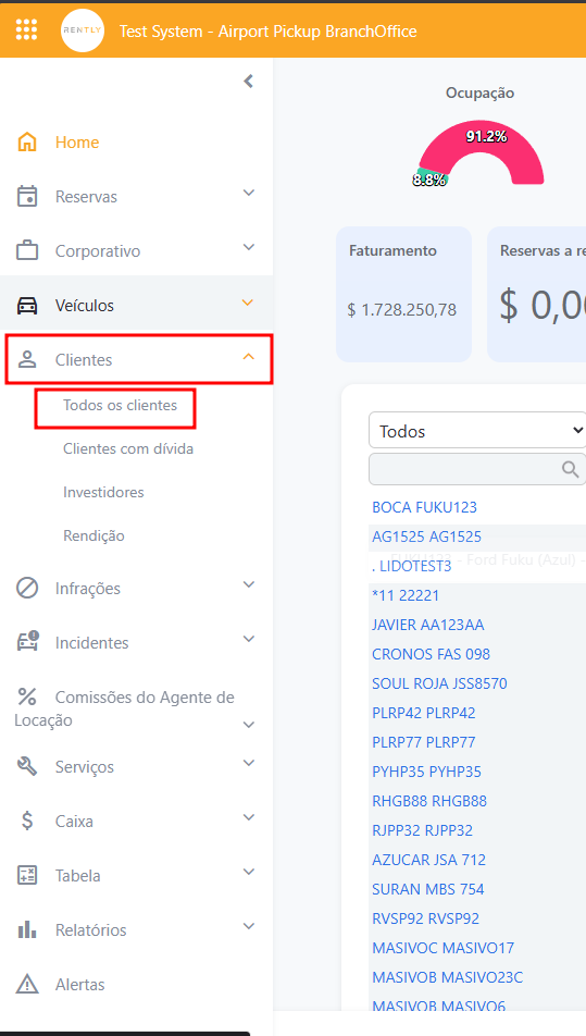 Se você deseja excluir um cliente do sistema, a primeira coisa a fazer é ir ao menu lateral esquerdo, procurar o ícone do cliente e acessar “Todos os clientes”.