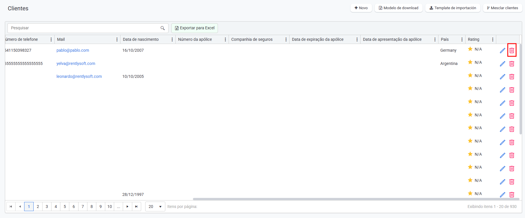 Depois de entrar, poderemos ver todos os clientes cadastrados no sistema, procurar o cliente que desejamos excluir e selecionar o botão “Excluir”.