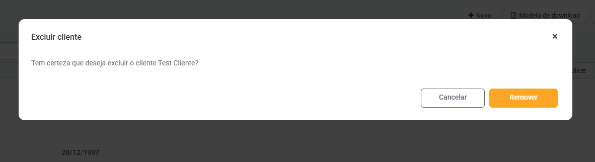 Será aberta outra janela perguntando se temos certeza de que queremos excluir o cliente. Selecionamos “excluir” se for isso que queremos ou simplesmente clicamos em “cancelar”.