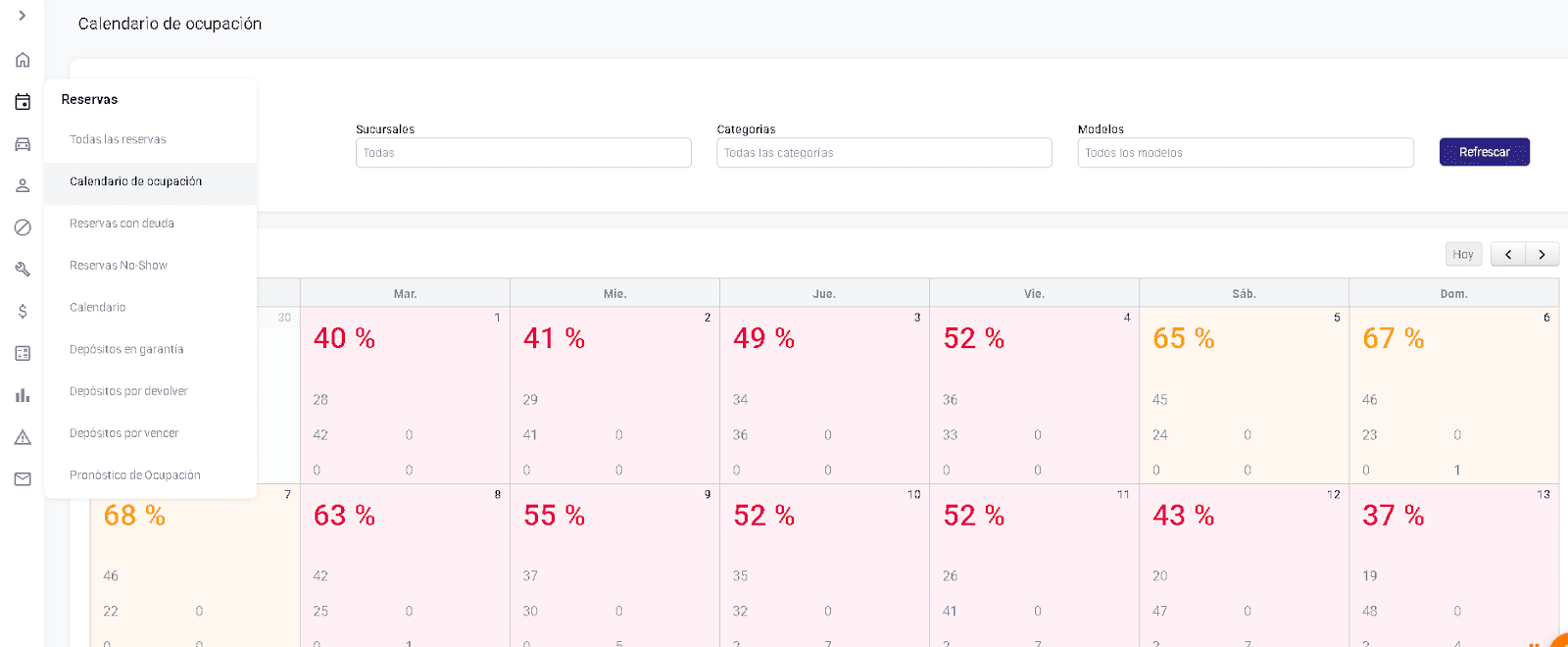 Para dias passados, ele não mostrará veículos reservados e confirmados. Mostrará apenas carros disponíveis, alugados e em serviço.