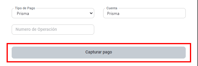 - Após selecionar Prisma, pressione o botão "Capturar pagamento".