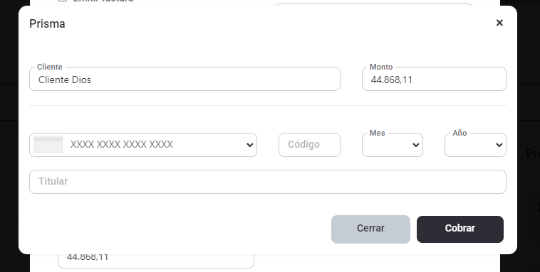 Por outro lado, você pode "Capturar pagamentos" pelo Payway no sistema se escolher o método de pagamento "Prisma". Isso significa que, se você selecionar a opção "Capturar pagamento", o pagamento será debitado do cartão do cliente.