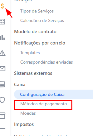 2. No menu à esquerda, selecione “Formas de pagamento”.