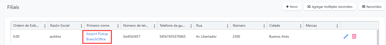 2. Selecione a filial clicando no nome azul.
