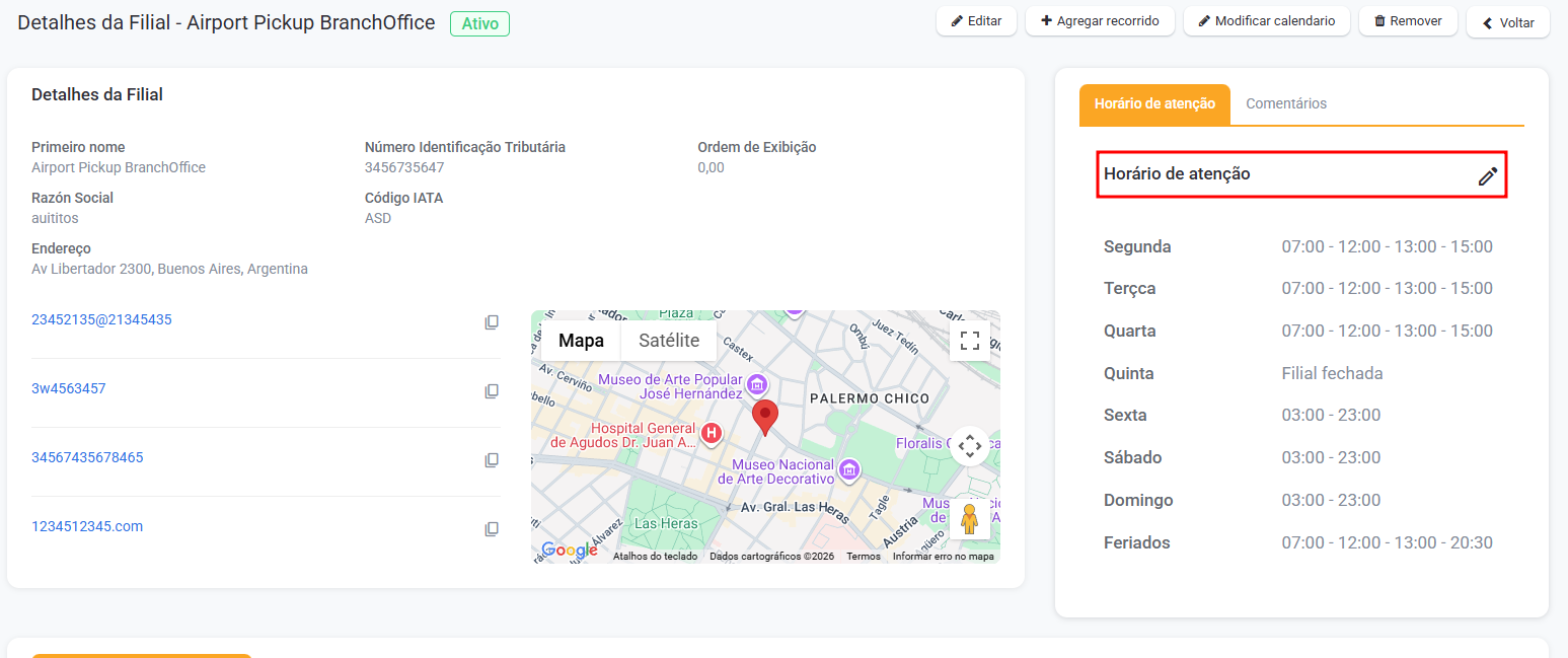 Como inserir os horários da filial | Centro de Ajuda Rently