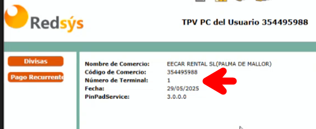 O Redsys precisa fornecer os dados do comerciante para a locadora. Além disso, para conectar o terminal físico, você precisa instalar o software compartilhado do Redsys no seu computador.