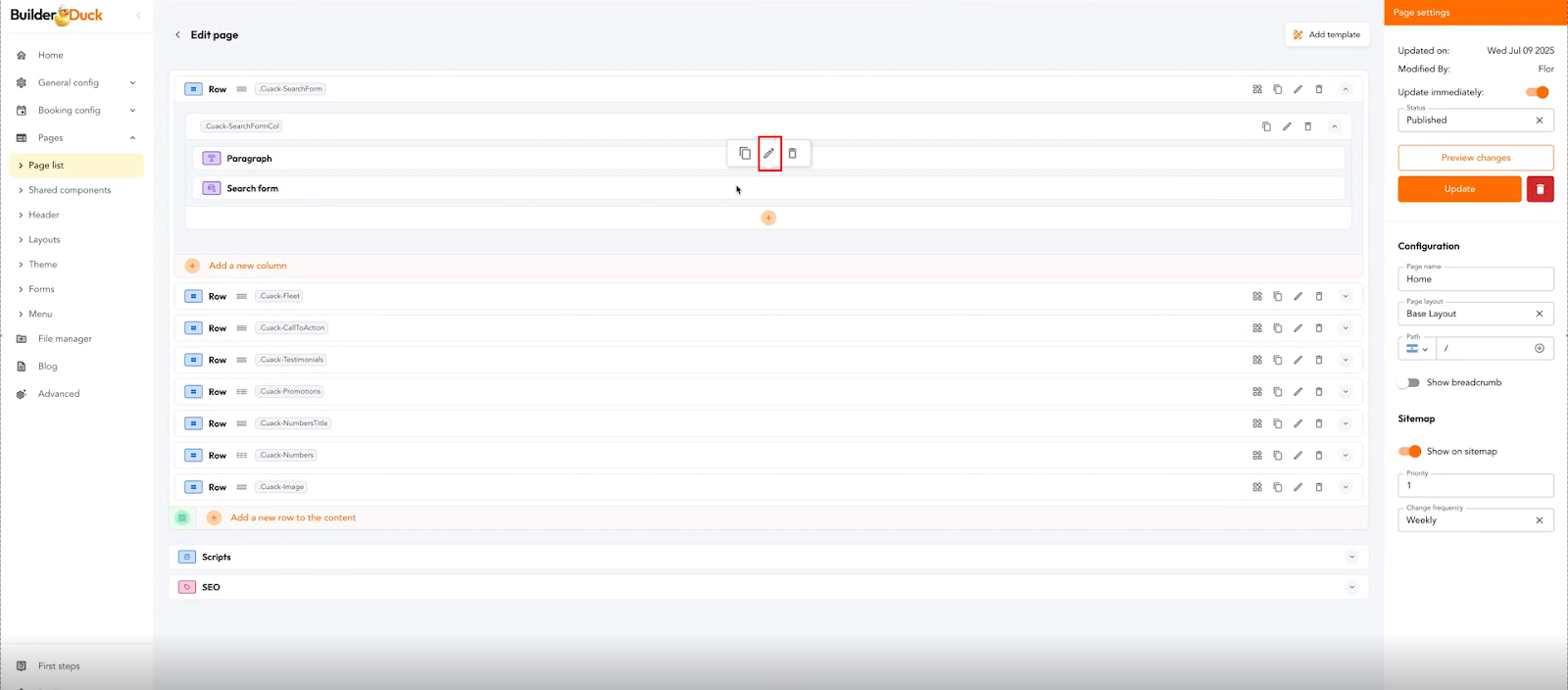 Em seguida, procure o componente Formulário de Pesquisa e clique no ícone de edição.