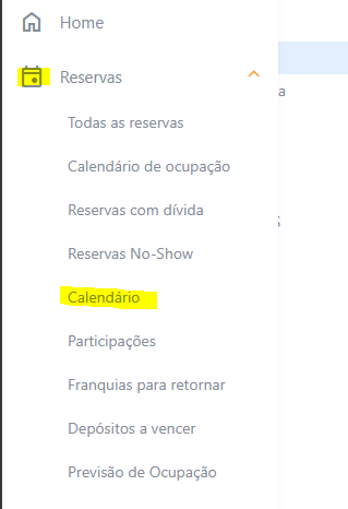 1. Acesse Reservas > Calendário