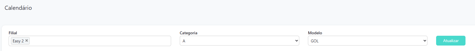 Ou seja, se você não inserir nenhuma filial, nenhum filtro será aplicado e, portanto, você verá o calendário de todas as filiais, com todos os carros e suas categorias e modelos.