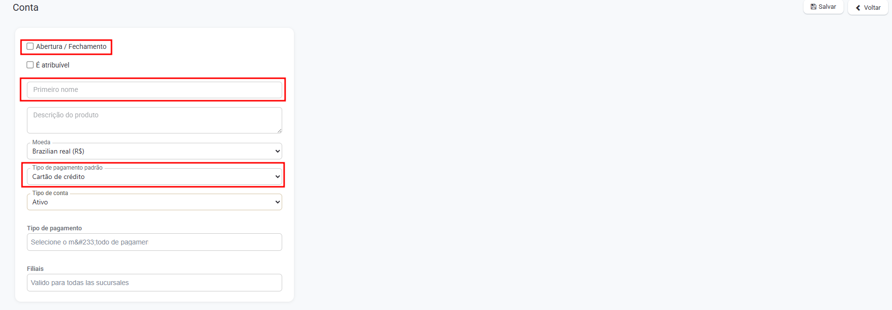 Indique o tipo de conta