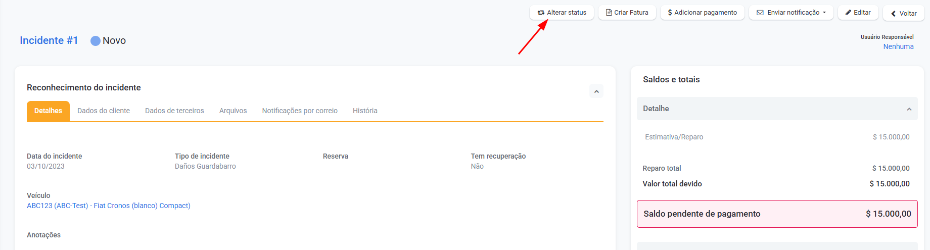 Alterar o status de um incidentes