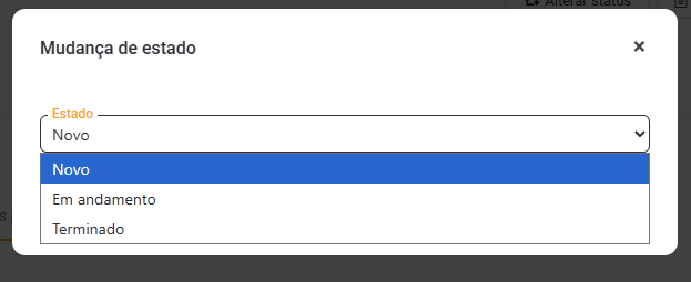 No menu suspenso, selecione o estado Novo, Em andamento ou Concluído. Por fim,