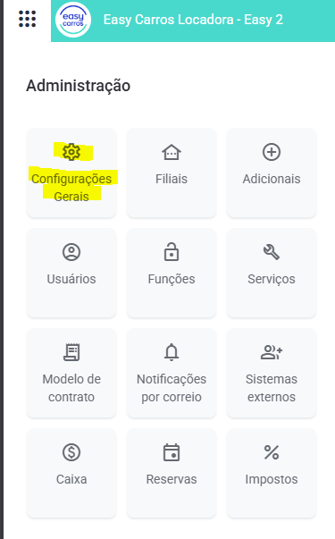 - Clique no ícone “Configuração Geral” no canto superior esquerdo.