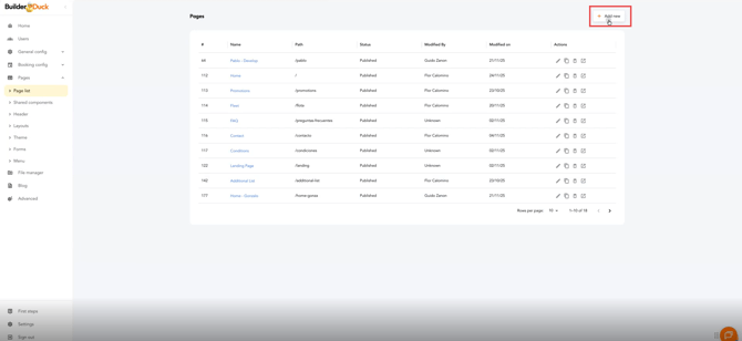 Para criar uma página de agradecimento que capture automaticamente os dados da reserva, vá até Páginas e selecione Lista de Páginas. Em seguida, clique em Nova.
