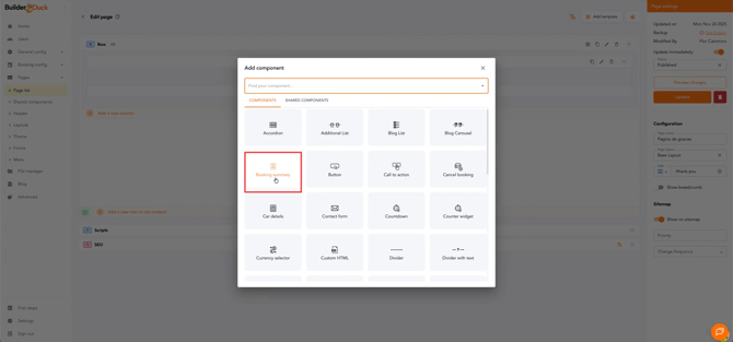 O Builderduck permite criar uma página de agradecimento personalizada quando o usuário conclui uma reserva. O sistema captura automaticamente os dados da reserva e exibe os detalhes da operação realizada.