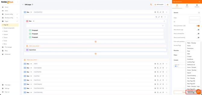 Na barra lateral, localize o campo Página de Sucesso e selecione a página criada no menu suspenso.