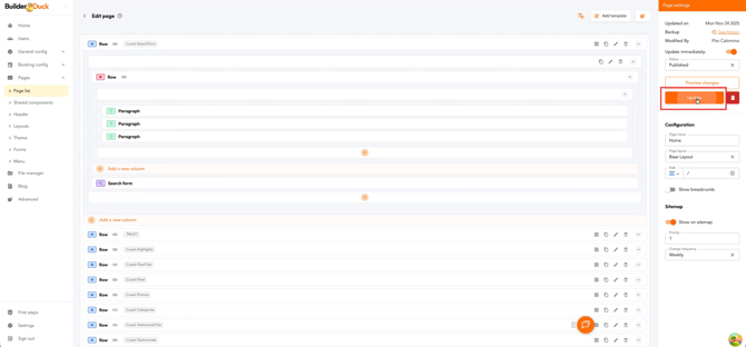 Em seguida, clique em Atualizar. Depois, clique em Voltar para retornar à lista de páginas e entre na Página Inicial.