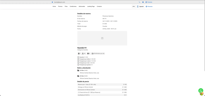 Ao realizar uma reserva, o usuário verá um resumo como este.