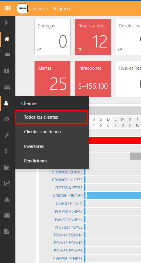 1. Primeiro, é necessário ir até a caixa «Todos os clientes» na lista de ícones à esquerda da tela.