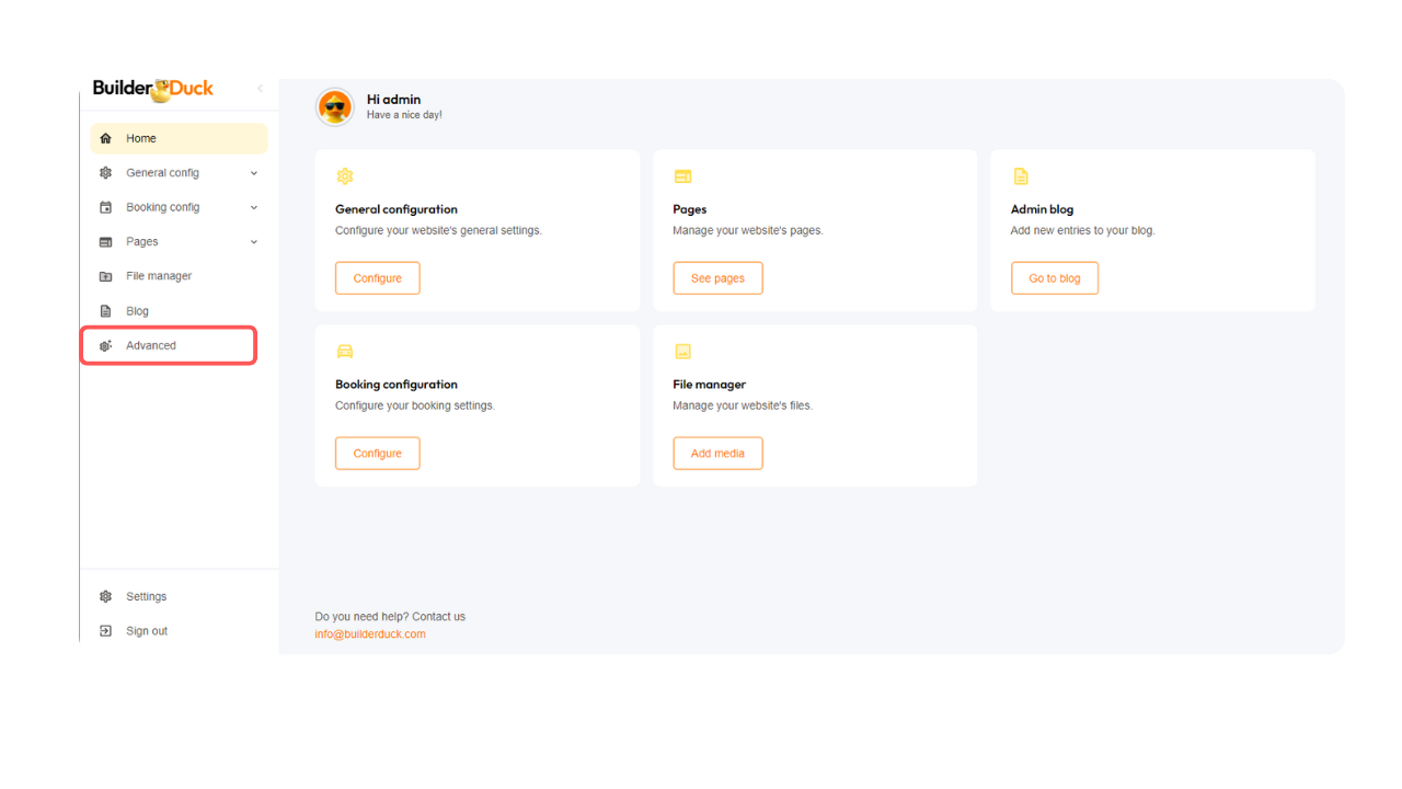 Configurações avançadas | BuilderDuck