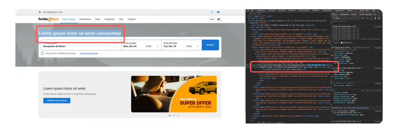 💡 Dica profissional: Ao inspecionar os elementos da sua página web, você encontrará componentes do BuilderDuck marcados com a classe 'Cuak'. Isso ajudará você a identificar o nome do componente.