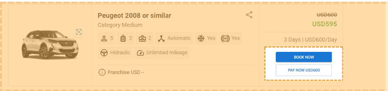 Na página de reservas, você encontrará botões para concluir a ação de reserva.