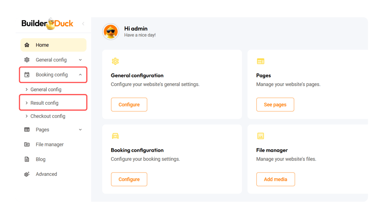 Para personalizá-los, acesse “Configurações de reserva” na barra lateral e selecione “Configurações de resultados”.