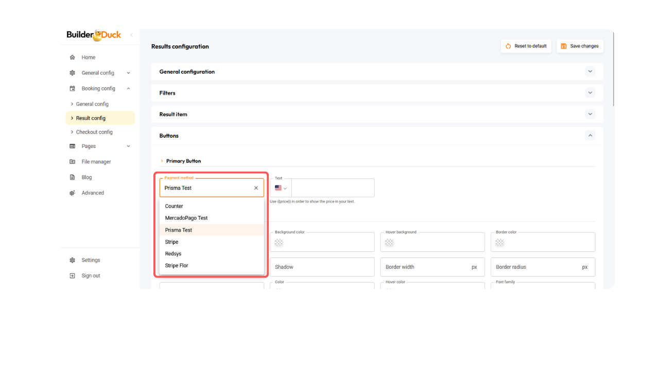 Configuração dos botões de reservas | BuilderDuck