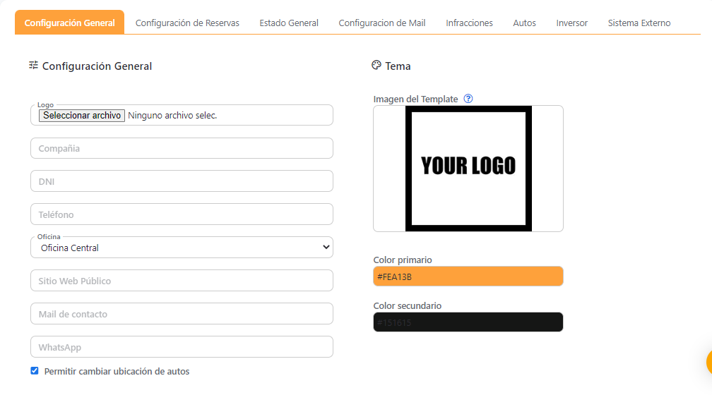 Configuración General | Rently Centro de Ayuda