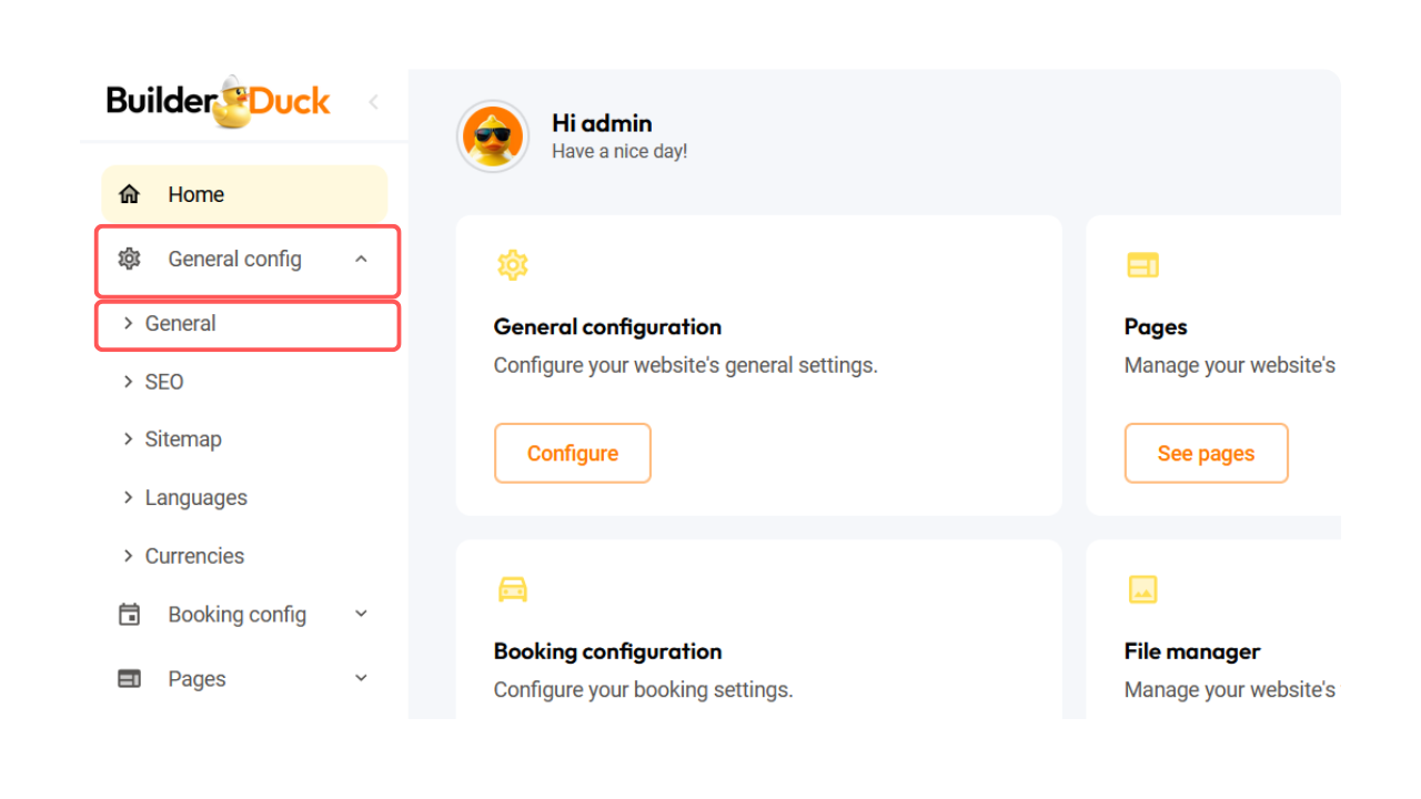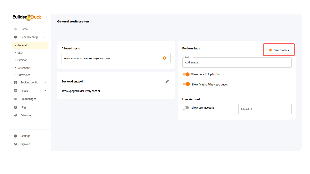 Após personalizar seu site com o Builderbuck, você precisa publicá-lo para que fique visível aos seus clientes. Para isso, você precisa concluir as Configurações Gerais.