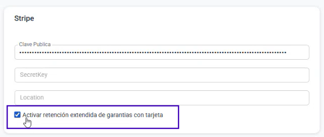 Caso deseje ativar a retenção prolongada de garantias com cartão, basta marcar esta opção.