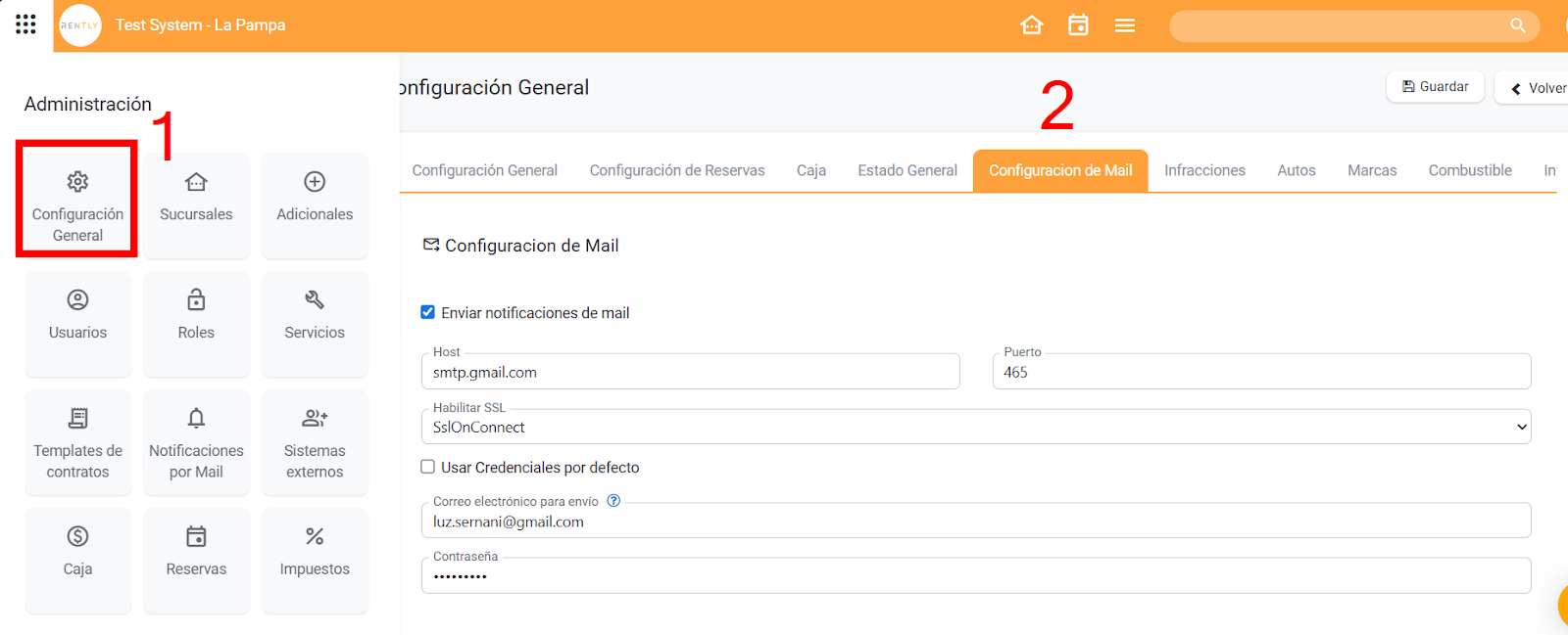Configurações gerais -> Configurações de e-mail