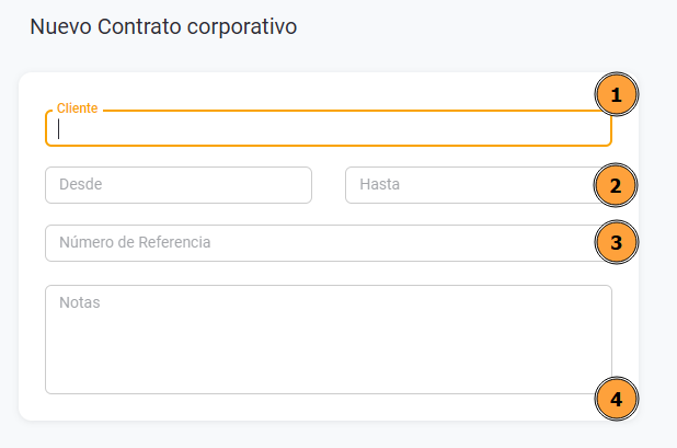 - Cliente: A entidade com a qual o contrato corporativo é firmado. Essa entidade deve estar cadastrada no banco de dados de Clientes.