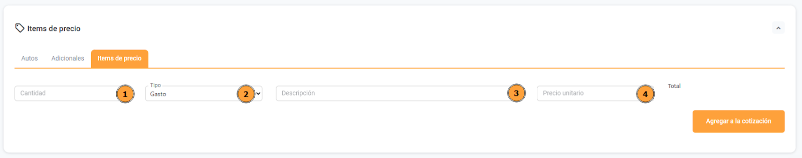 - Quantidade: Número de itens de preço do tipo selecionado.
