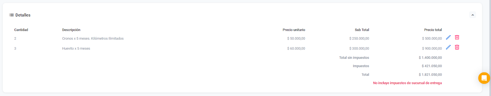 - Editar: Até que você confirme o orçamento, você pode editá-lo para ajustar valores ou unidades.