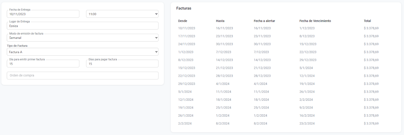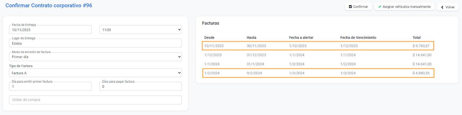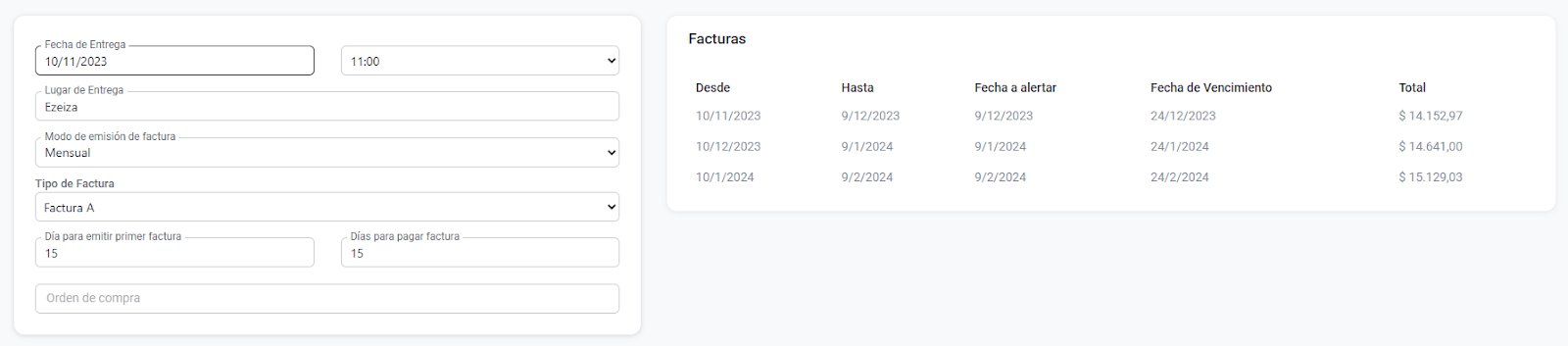 - A primeira fatura é gerada a partir da data de entrega até o final do primeiro período.