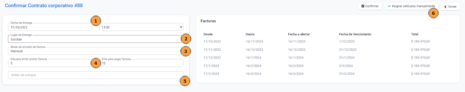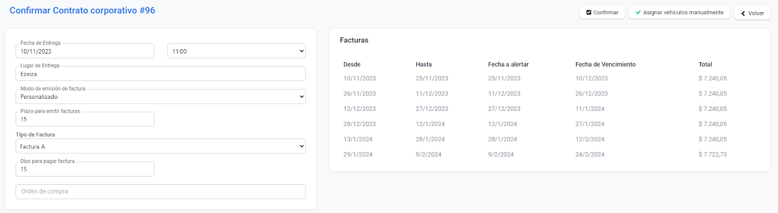 - Atribuição Manual de Veículos: Permite selecionar os veículos atribuídos a cada reserva gerada pelo Pedido de Compra. Se esta opção não for utilizada, o sistema os atribuirá automaticamente.