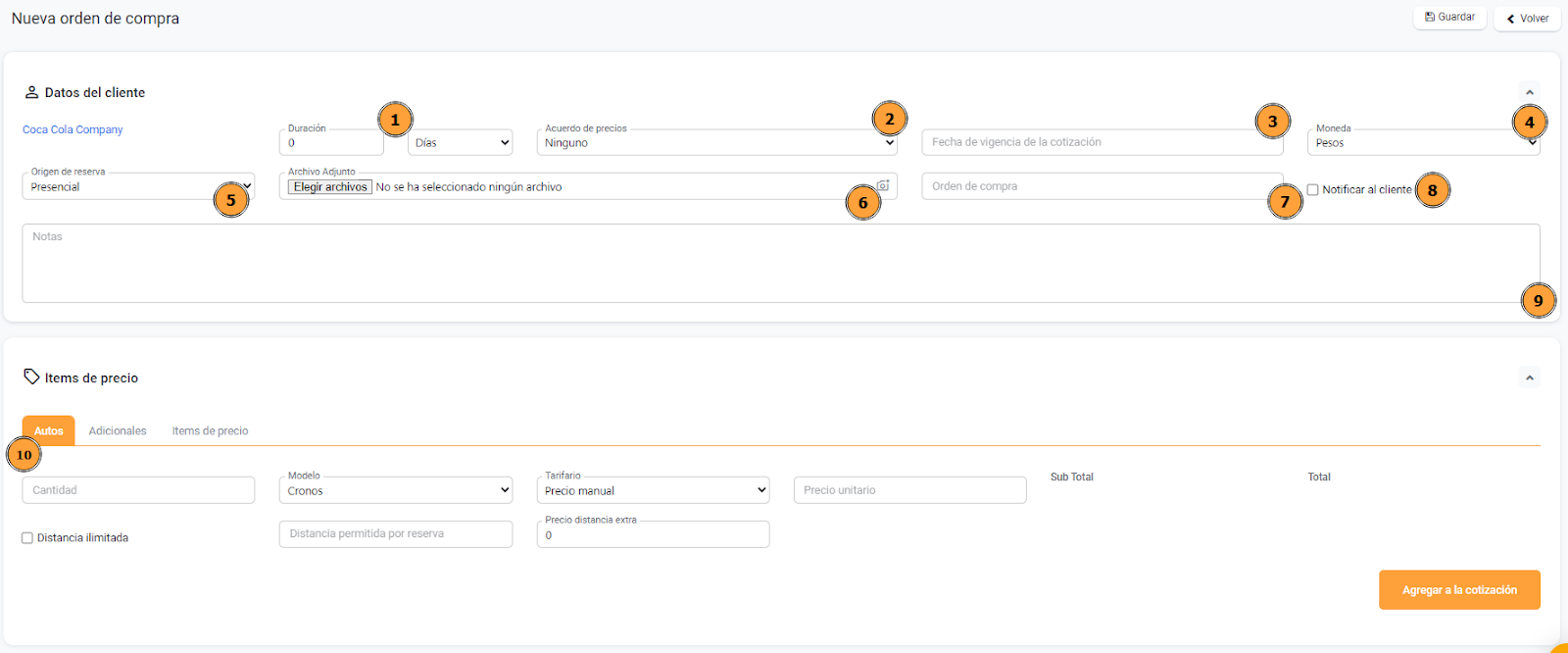 - Acordo de Preços: Campo opcional caso esteja utilizando um acordo de preços existente.