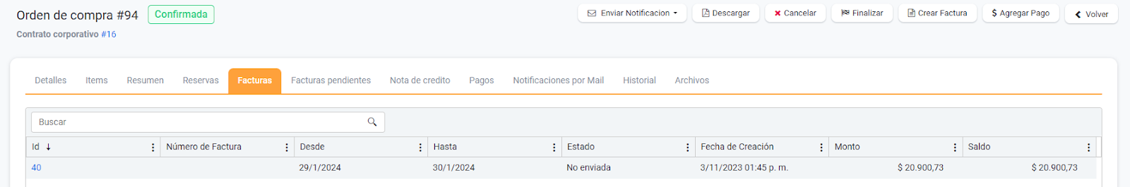 Dentro de um Contrato Corporativo, teremos a opção de gerar um novo Pedido de Compra.
