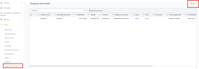 Selecione Despesas recorrentes. Em seguida, selecione Novo.