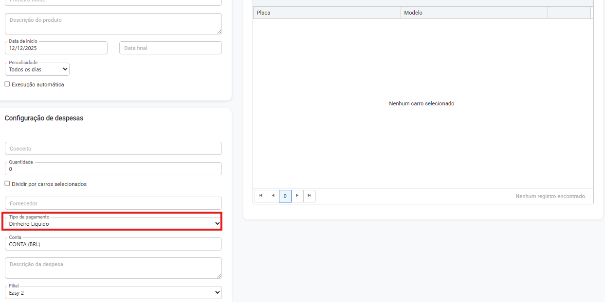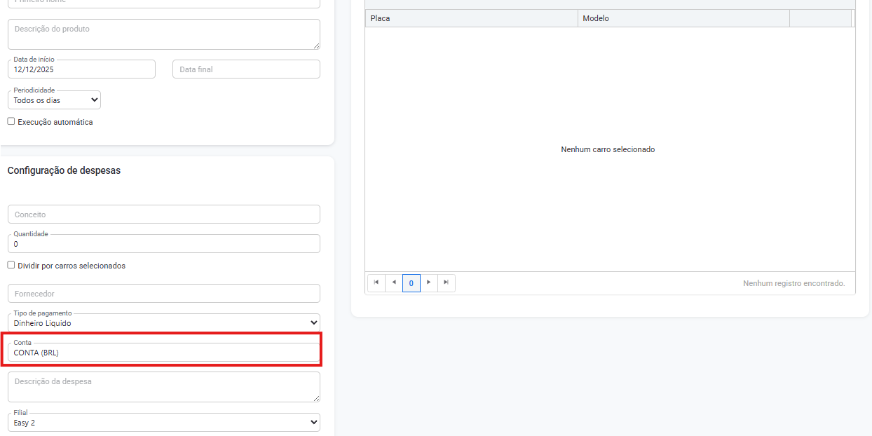 Abaixo, você pode marcar se deseja que a despesa seja executada automaticamente na caixa. Caso não marque, isso deverá ser feito manualmente.