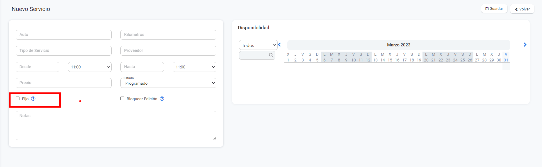 Em outras palavras, se um serviço for designado como "fixo", sua disponibilidade será bloqueada nas datas agendadas e a retirada do veículo será bloqueada enquanto o serviço estiver em andamento.