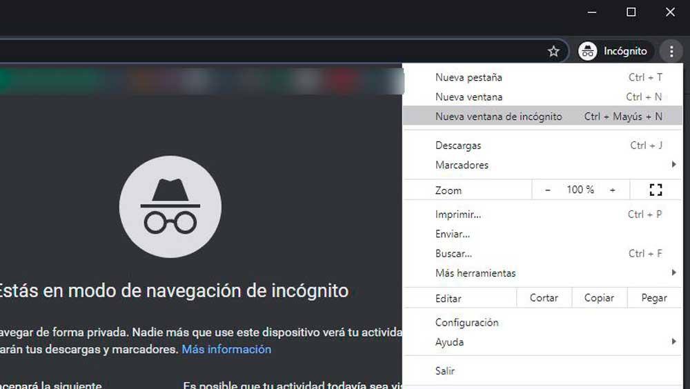 No Chrome, devemos ir ao menu dos três pontos no canto superior direito e clicar em “Nova janela anônima”. No teclado, podemos pressionar as teclas