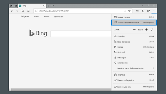 No Microsoft Edge, vamos ao menu dos três pontos no canto superior direito e clicamos em “Nova janela InPrivate”. Também podemos usar Ctrl + Shift + P.