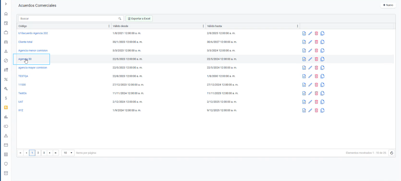 Encontre o acordo comercial que deseja duplicar e clique no nome para acessá-lo.