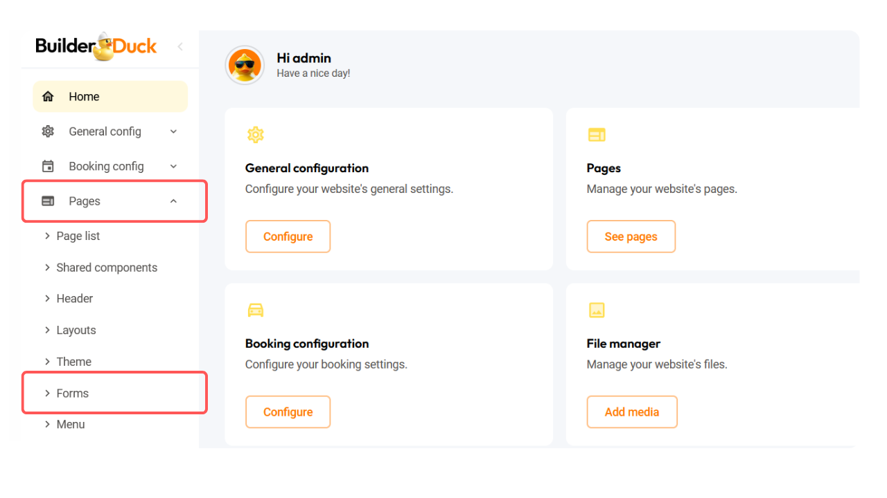Para editar os formulários da sua página web, acesse “Páginas” e selecione “Formulários”.