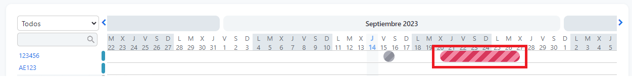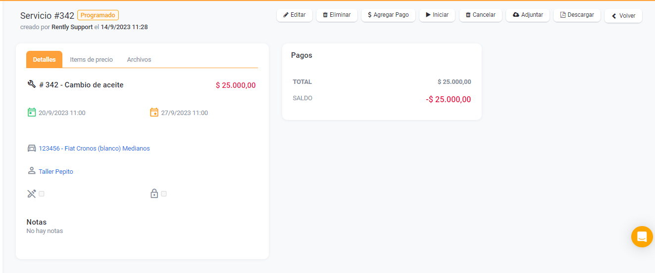 Depois de criarmos o serviço, será exibida a seguinte tela, na qual vemos que o serviço fica no status Programado (não leva em consideração a disponibilidade do veículo, a menos que esteja marcado como fixo).